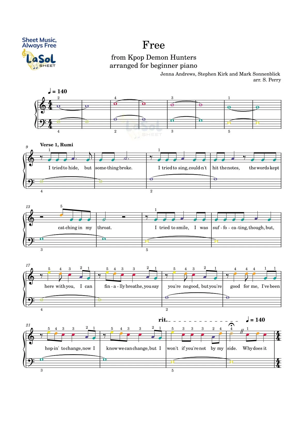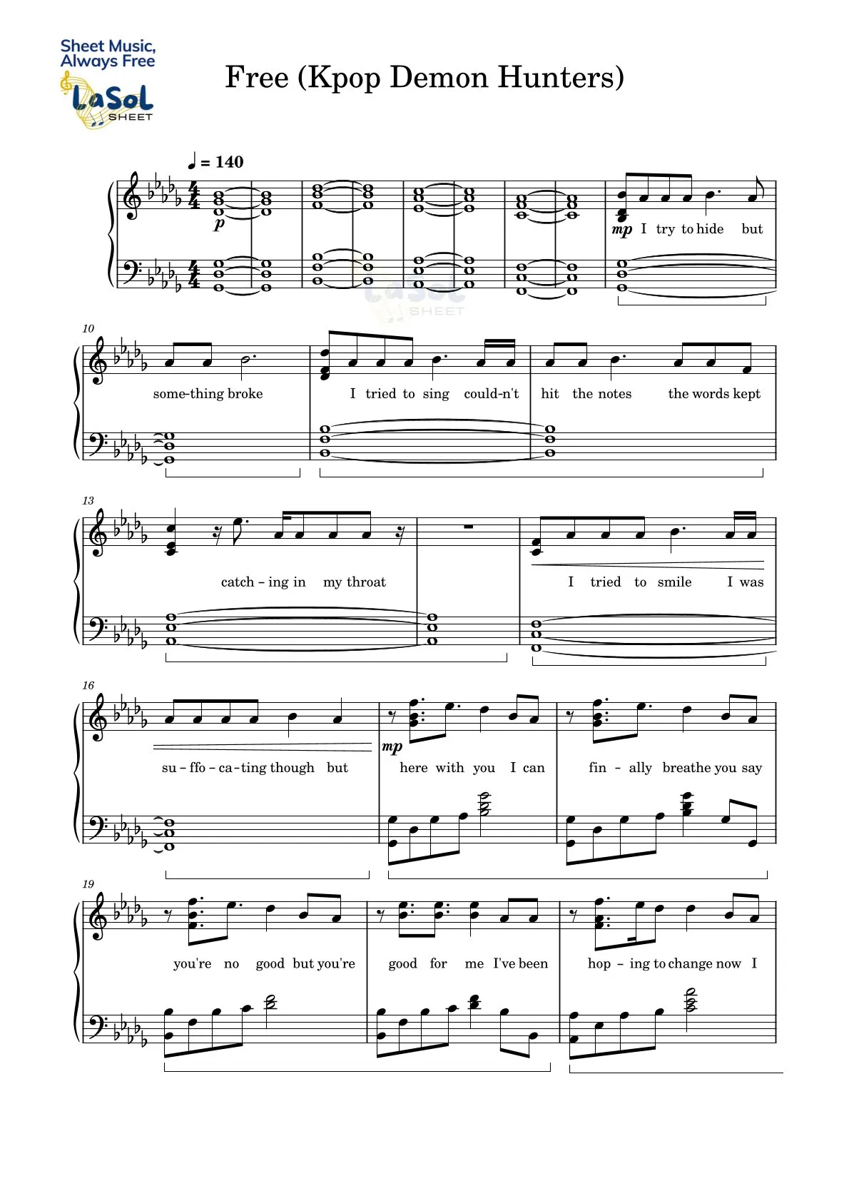 Free – Rumi, Jinu (KPop Demon Hunters) Piano Sheet Music