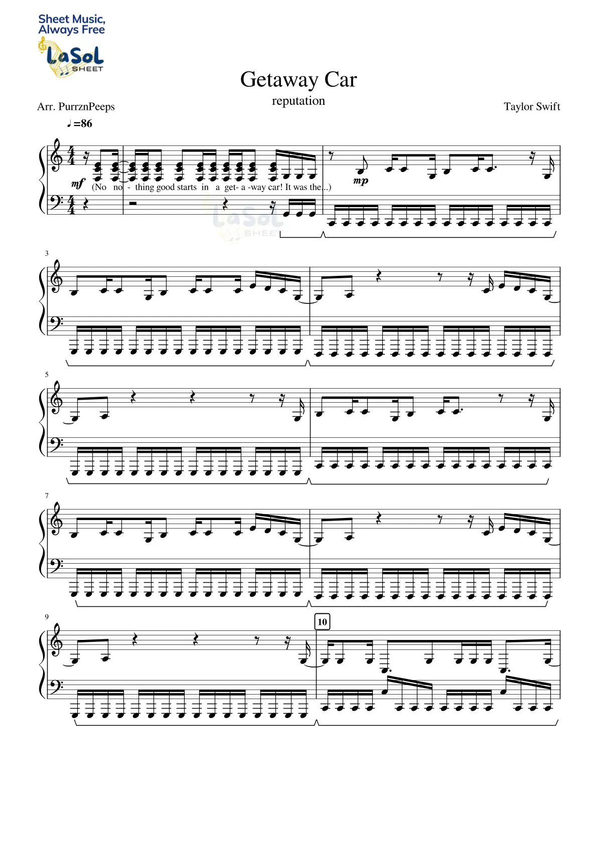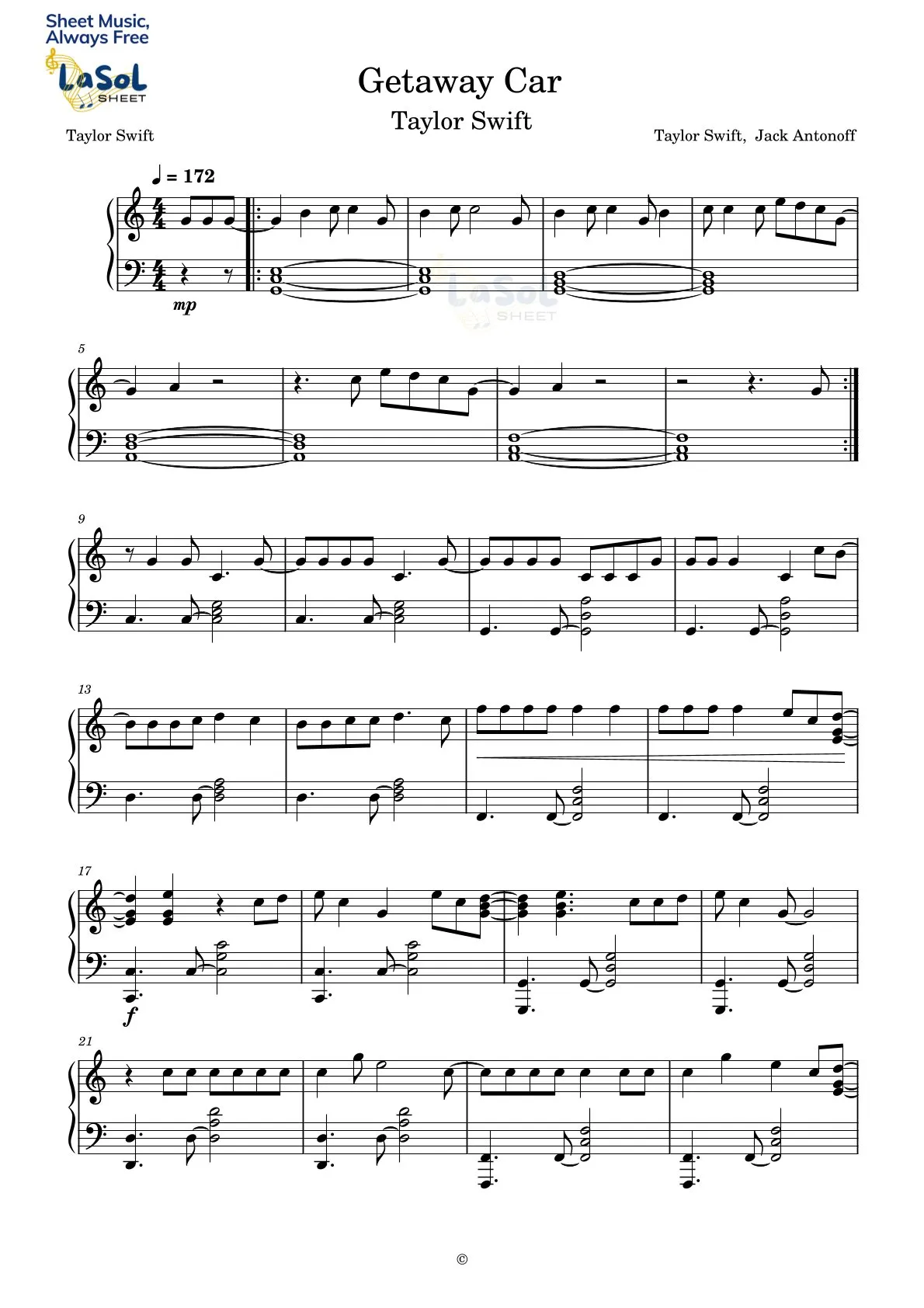 Download Getaway Car – Taylor Swift Sheet Music File PDF for FREE