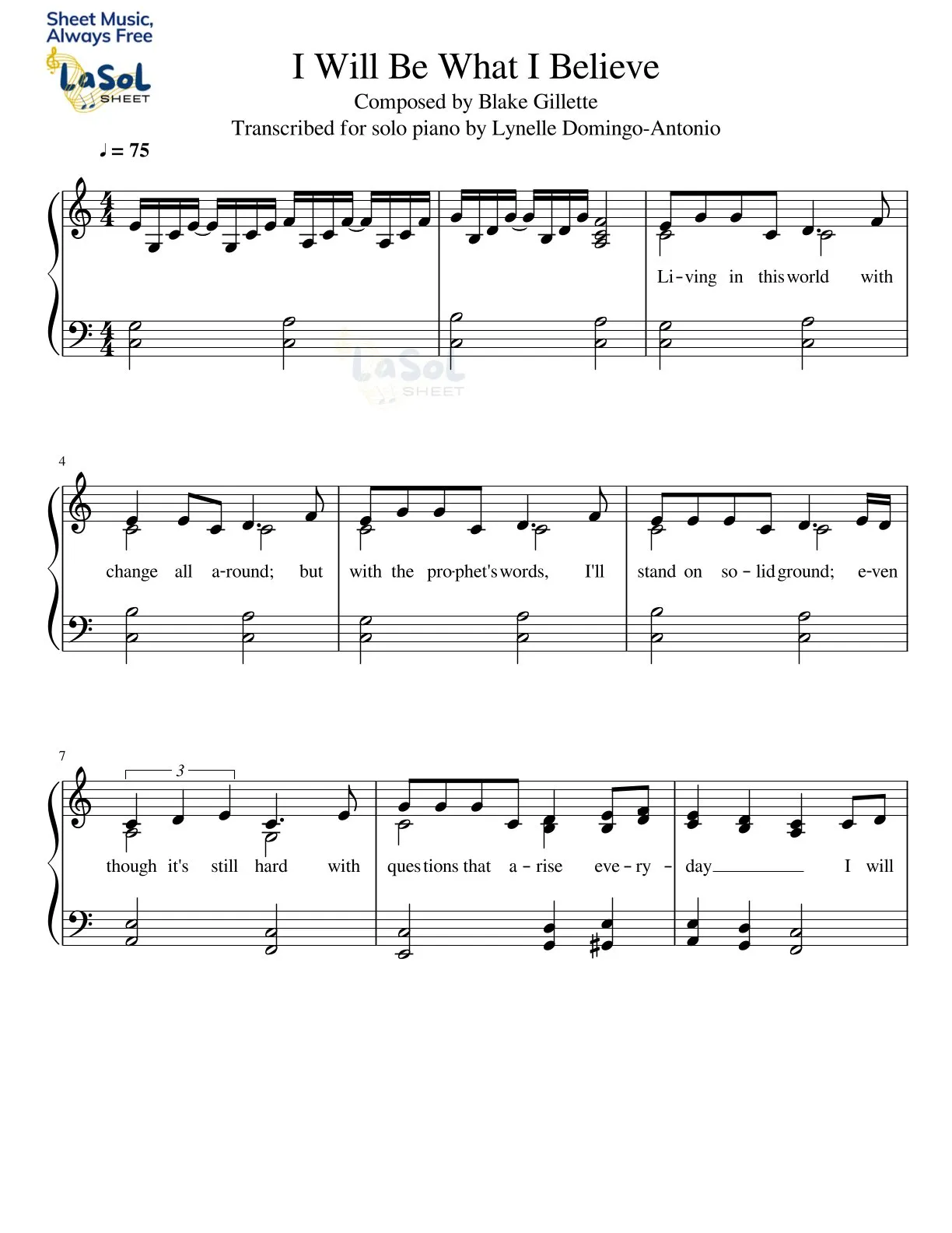 Download I Will Be What I Believe Sheet Music File PDF for FREE