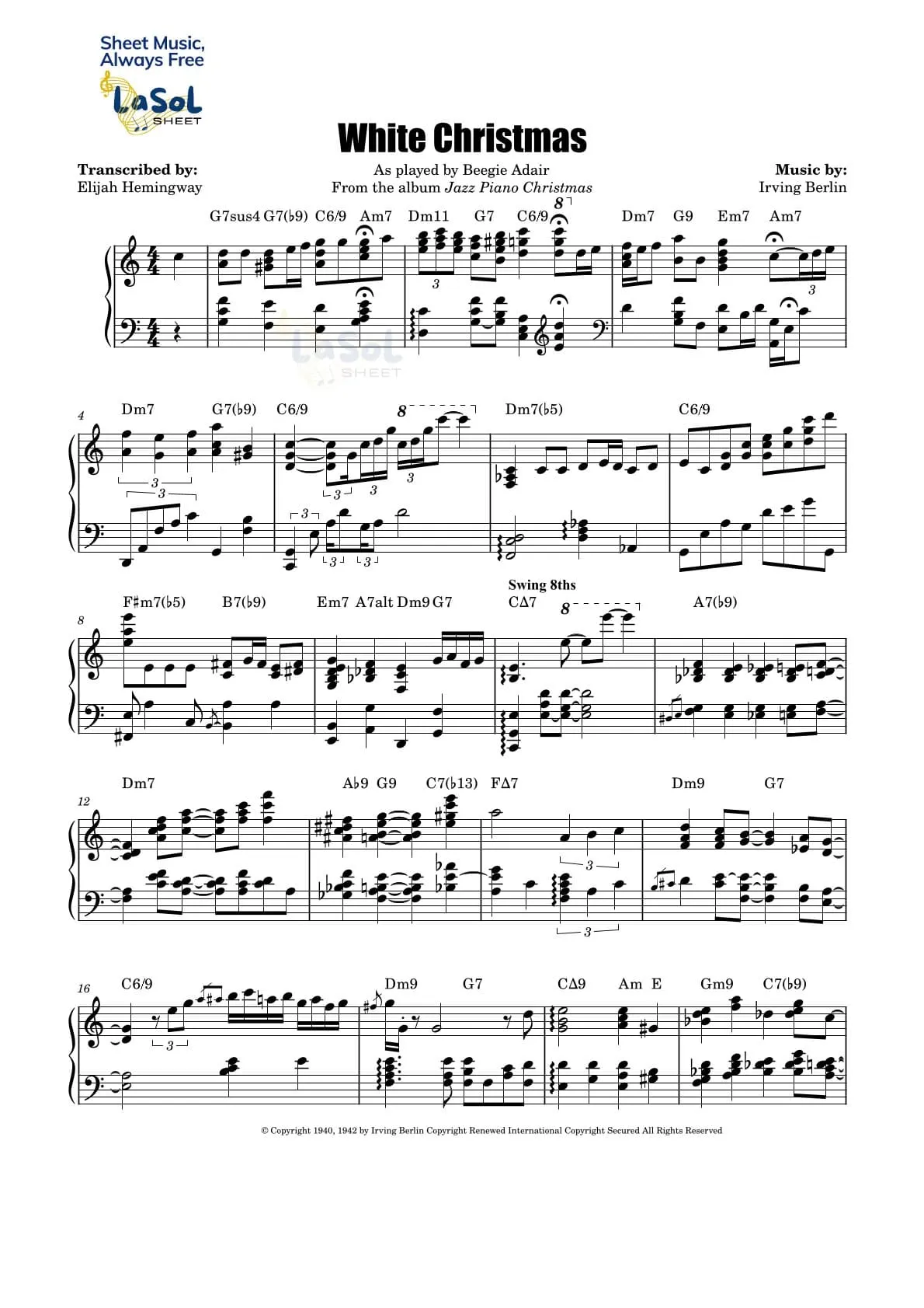 Whether you’re performing it solo or with an ensemble, this sheet music will help you bring the comforting spirit of the season to life. Let the timeless charm of “White Christmas” fill your home or performance with warmth and nostalgia.